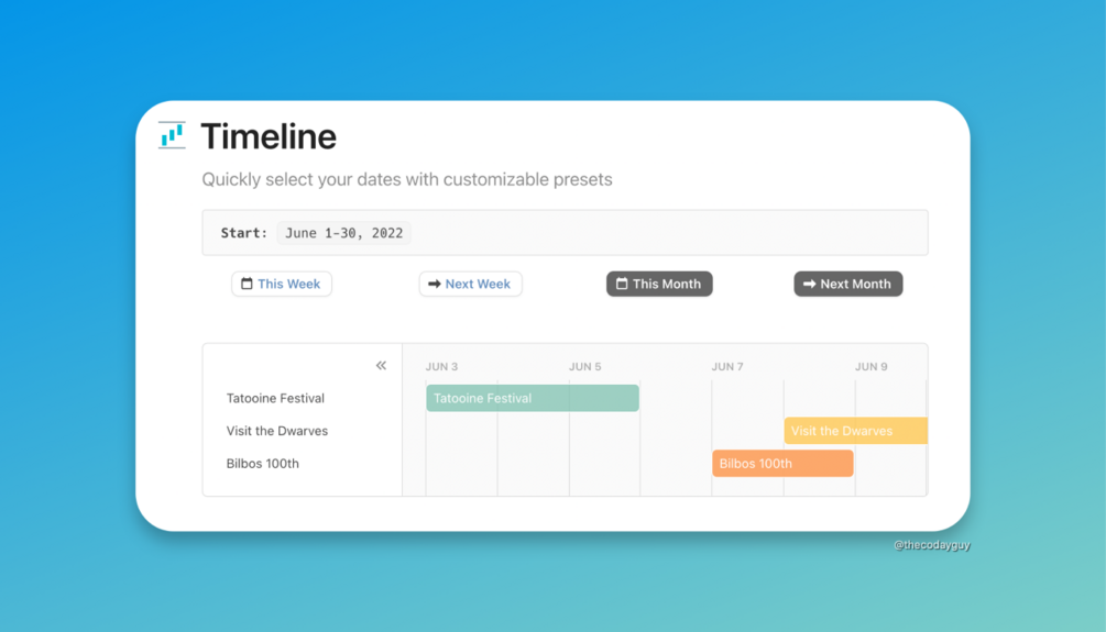 This template is free! Although a small tip never hurt anyone ;) Either way, get yourself a link to the copy of a Coda Template that has everything you need to create your own Quick Date Presets